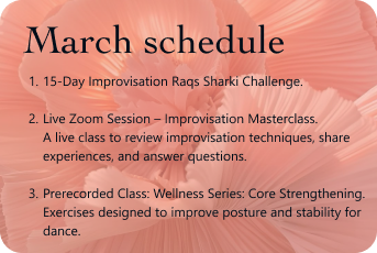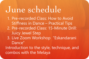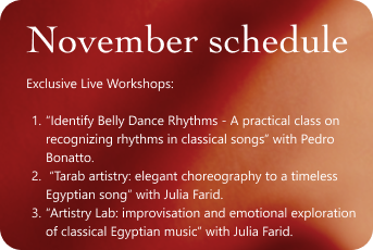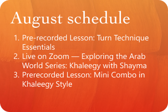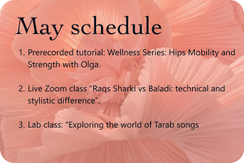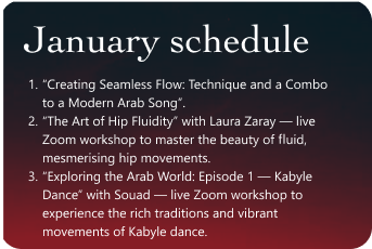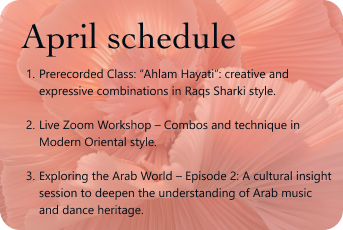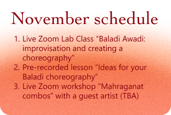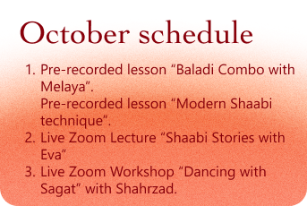 – Pre-recorded lesson “Baladi Combo with Melaya”.
