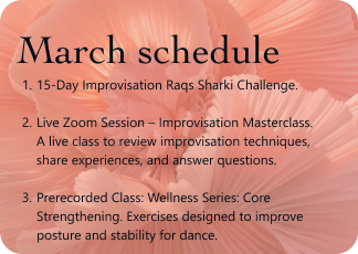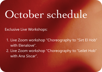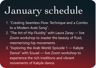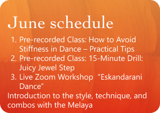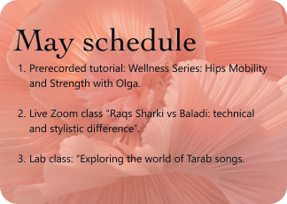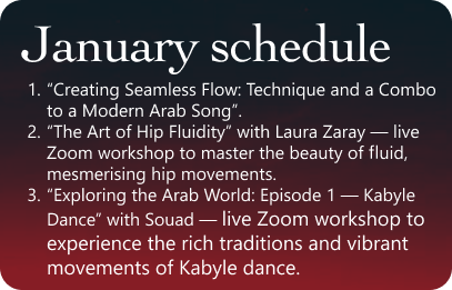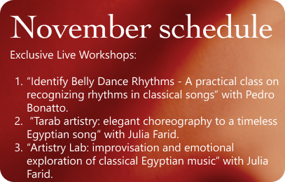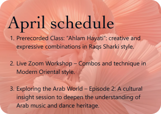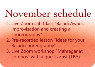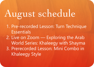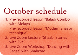– Pre-recorded lesson “Baladi Combo with Melaya”.
