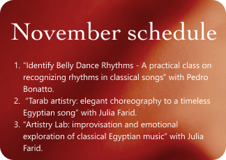 A special cultural session will highlight the roots and evolution of Shaabi, adding context to your dance. Step by step, you will also develop your own Baladi choreography, to be presented in our closing showcase at the end of the season.